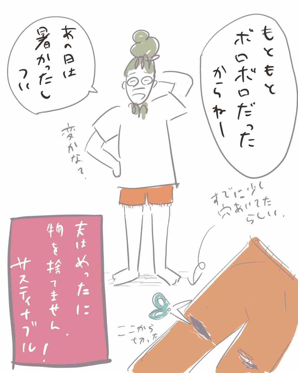 短パン事変 【ドレッド夫の生態】 2025年08月30日 20:00 新たな短パンが、突如ファッションラインナップに取り入れられました。夫の奇行についてはこちらも、、↓ 「ドレッド夫の生態」カテゴリの最新記事 タグ :#日常絵日記#ドレッド夫生態 < 前の記事次の記事 > コメント コメントフォーム 名前 コメント 記事の評価 リセット リセット 顔 星 情報を記憶 コメントを投稿する
