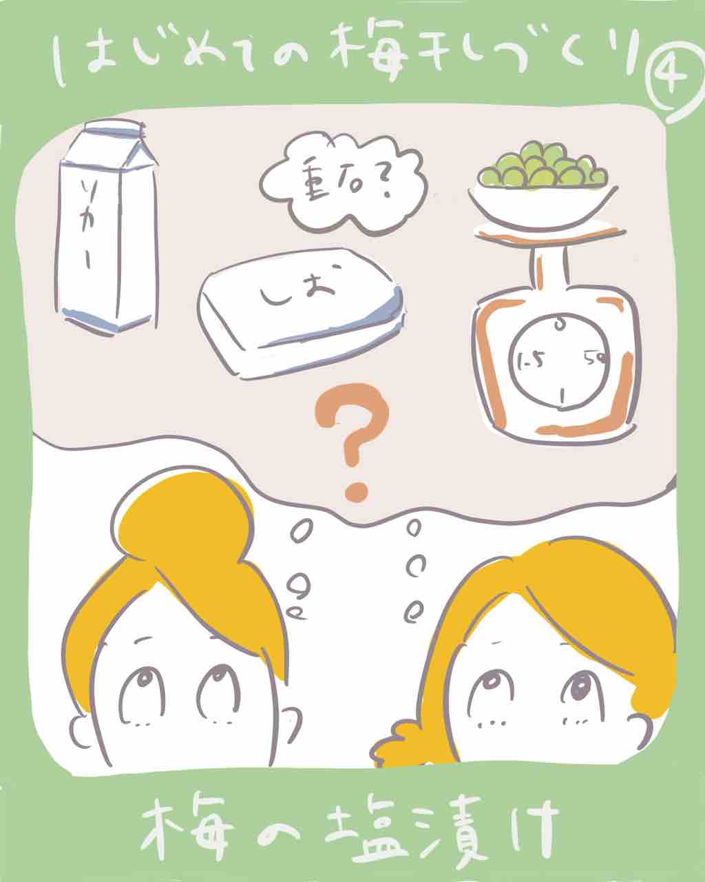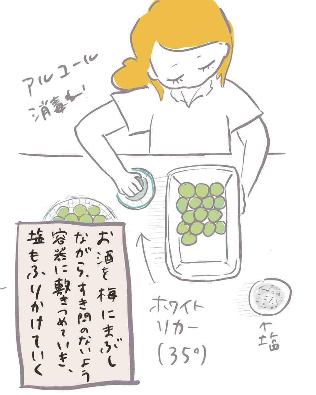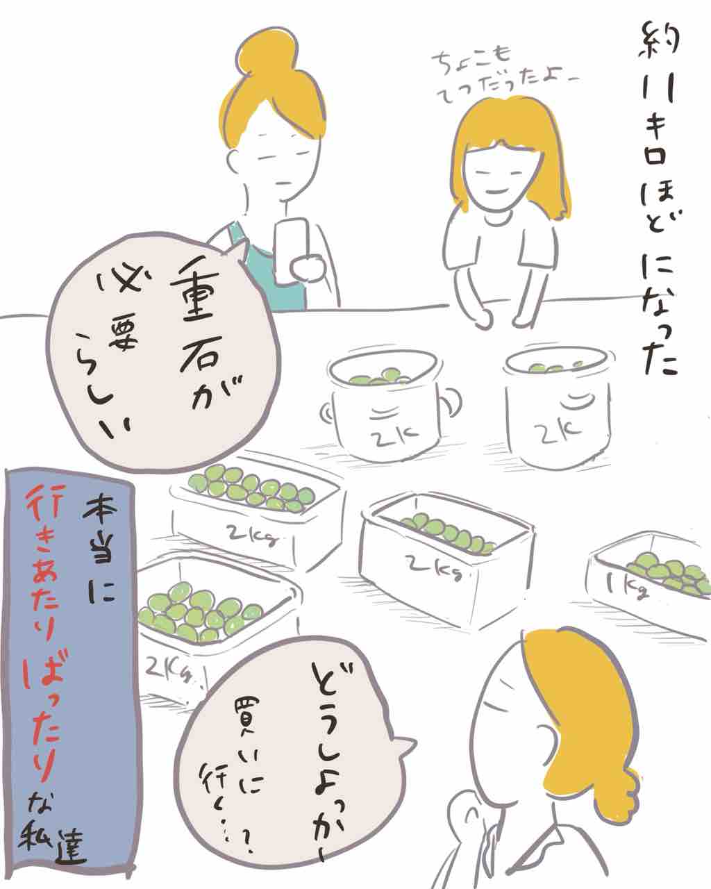 前回描いた【梅の選別〜ヘタとり】